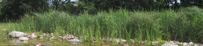 Der Aufbau des Klärteichs entspricht einer Pflanzenkläranlage. Die Wurzeln von Schilf, Binsen und anderen Repositionspflanzen entziehen dem Wasser Nährstoffe.